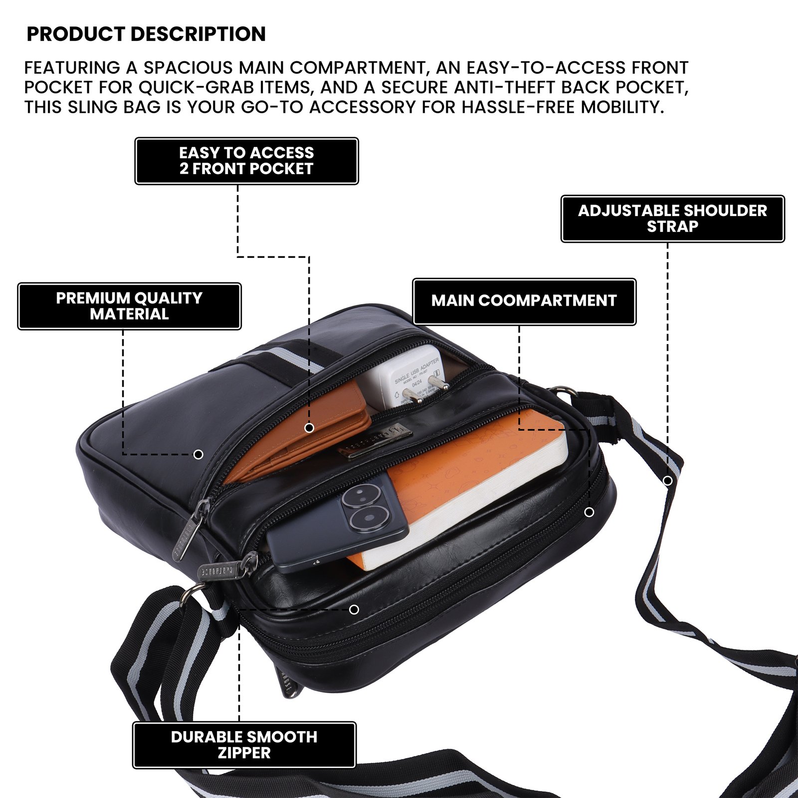 Crafted for everyday convenience with timeless appeal, this Premium Synthetic Leather Sling Crossbody Bag is designed to keep your daily essentials organized while adding a touch of classic style. Made from high-quality leather with a rich finish, the bag offers durability, elegance, and long-lasting use.
