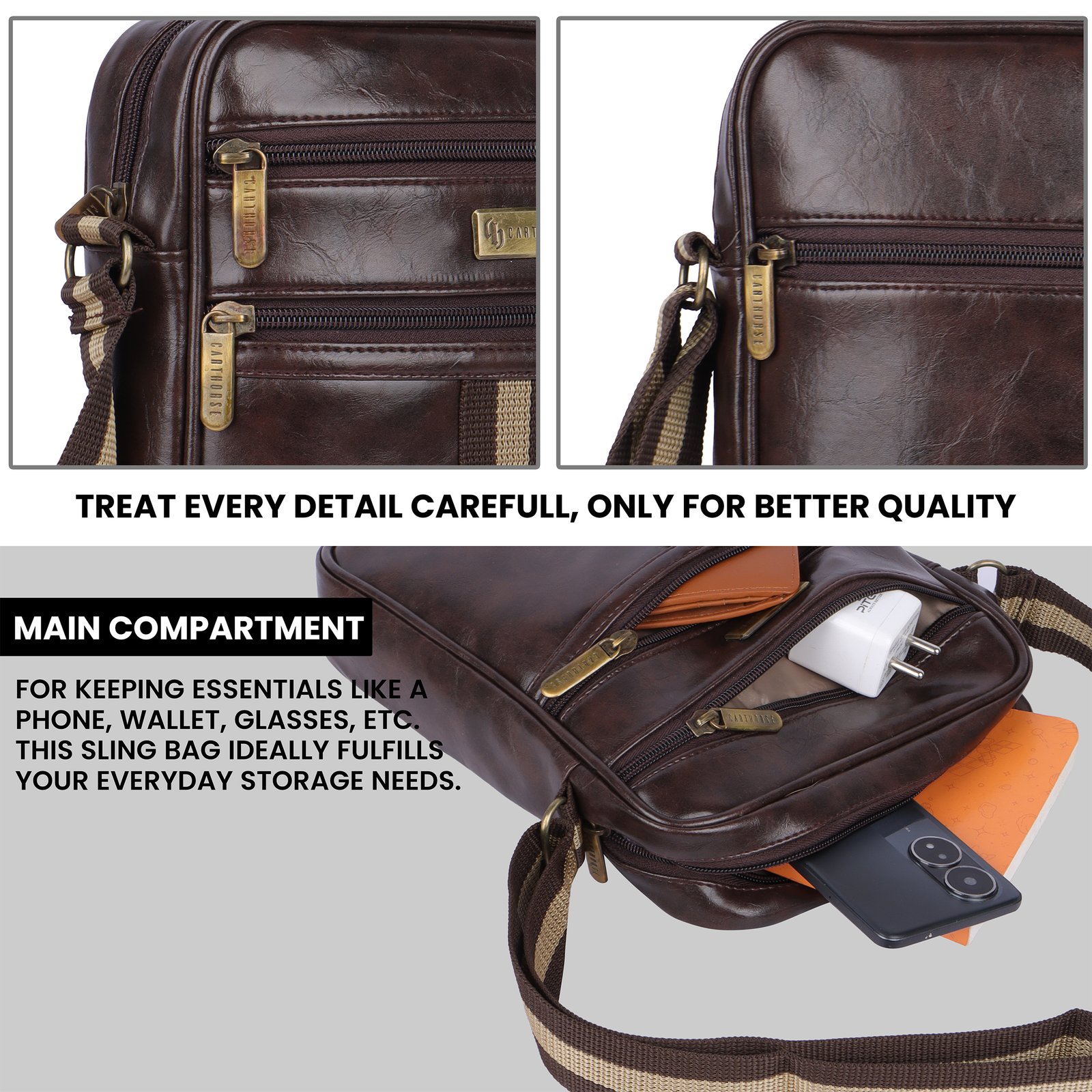 Crafted for everyday convenience with timeless appeal, this Premium Synthetic Leather Sling Crossbody Bag is designed to keep your daily essentials organized while adding a touch of classic style. Made from high-quality leather with a rich finish, the bag offers durability, elegance, and long-lasting use.