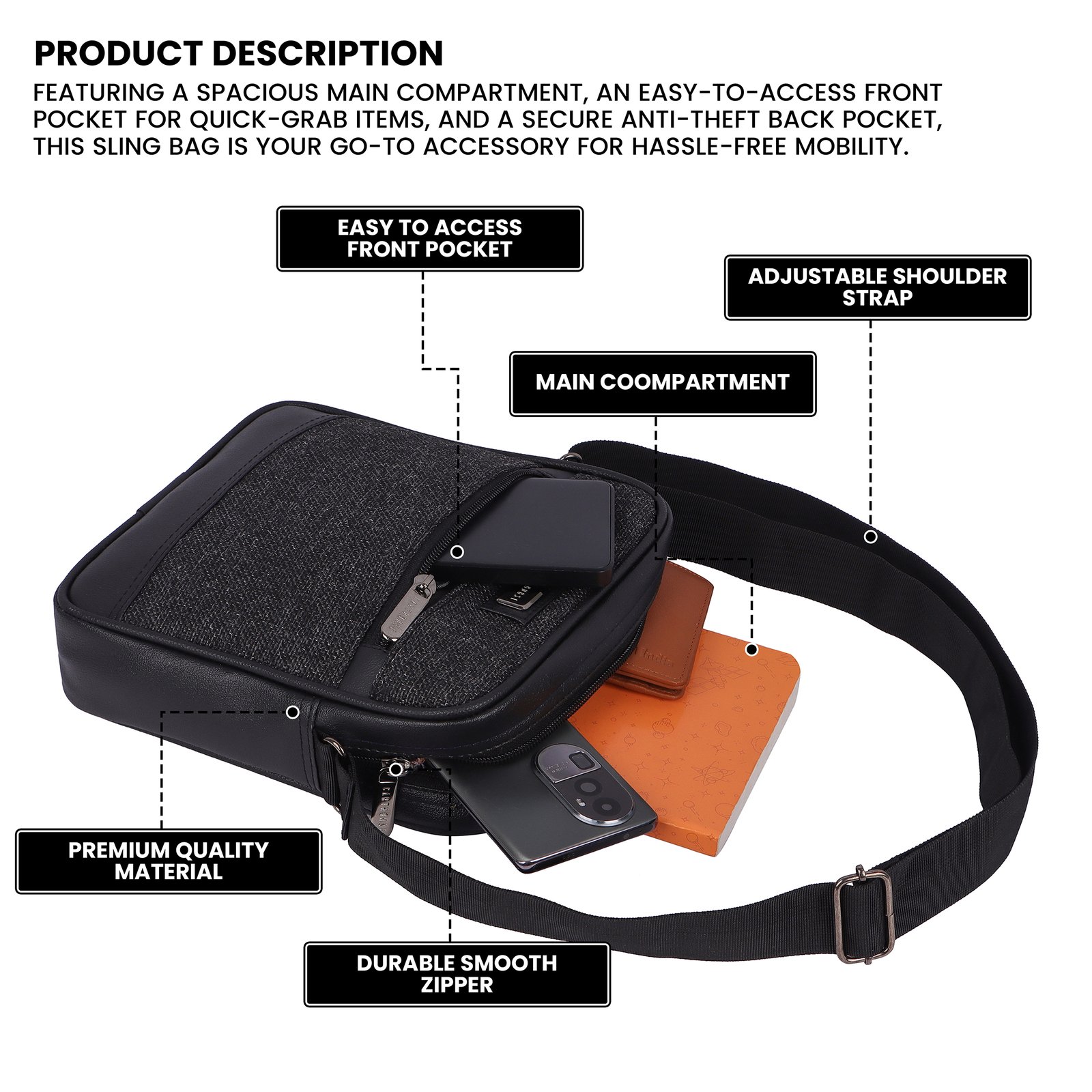 Crafted from premium materials with a refined texture and fitted with durable, smooth-glide zippers, this sling bag offers both elegance and practicality. The adjustable shoulder strap ensures a comfortable and customized fit for everyday use.