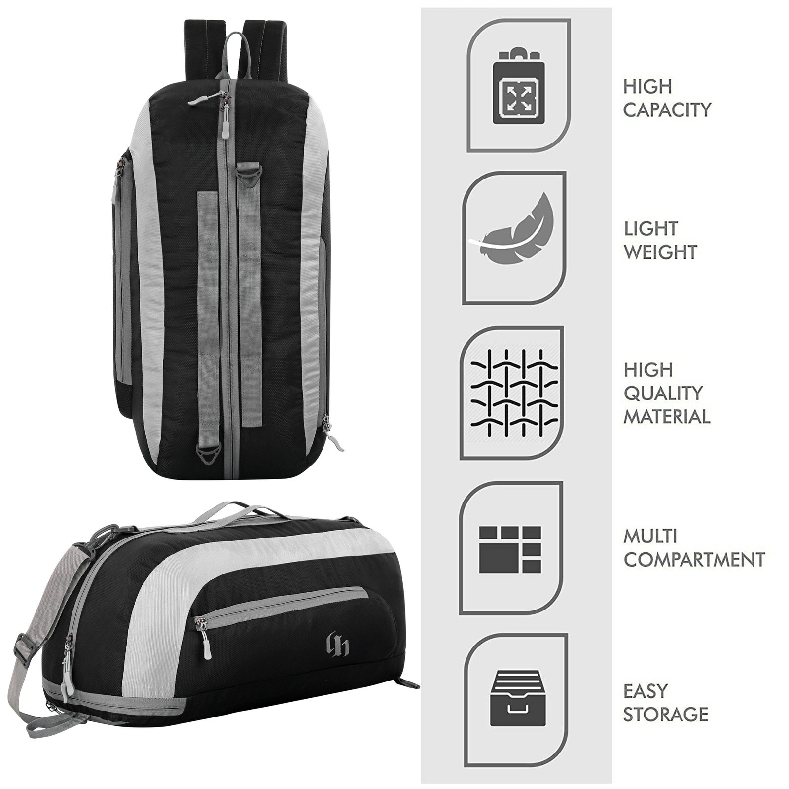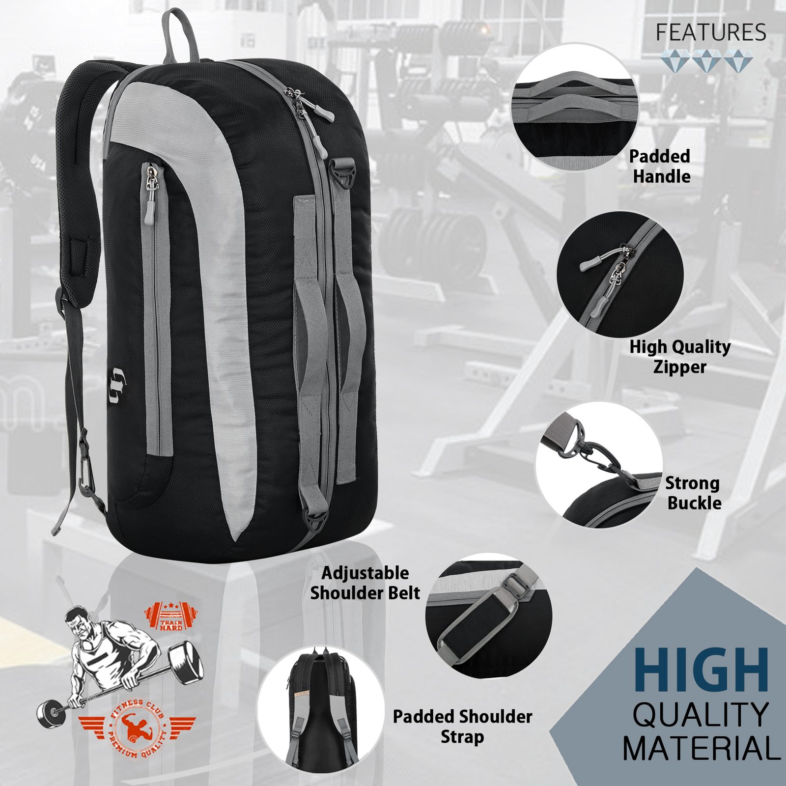 The spacious main compartment easily fits gym clothes, shoes, towels, and daily essentials, while multiple zippered pockets help keep your items neatly organized. Equipped with high-quality smooth zippers, a strong buckle system, and adjustable padded shoulder straps, it ensures comfort and long-lasting performance even during heavy use.