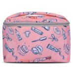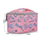 Keep your beauty essentials stylishly organized with this adorable pink cosmetic bag featuring fun doodle prints. Designed with a wide, spacious compartment and soft inner lining, it easily holds makeup, skincare, brushes, and travel accessories. The top flap includes dedicated slots for brushes and tools, while the sturdy zipper closure ensures everything stays secure. Lightweight, durable, and perfect for travel or daily use, this vanity bag brings both cuteness and convenience to your routine.